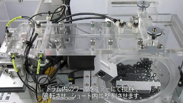 振動ではなくエアーの力によりワークを整列・搬送させる装置です。