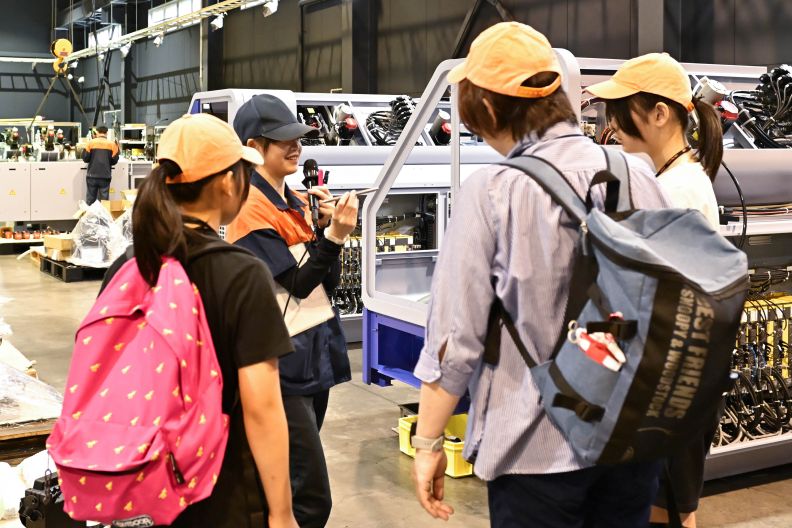 組立途中の製品内部を実際に見ることができ、中学生たちは「想像よりずっと複雑!」と驚いていました。