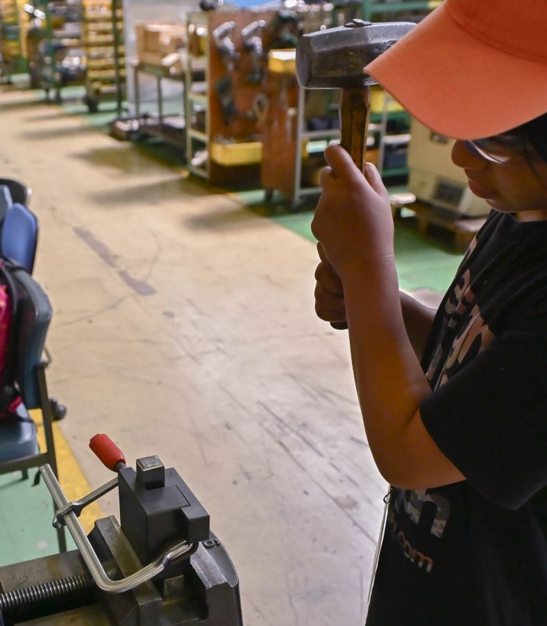 見ている以上に難しい作業です。ハンマーを持った瞬間に「重い!!」と驚く表情も見えました。